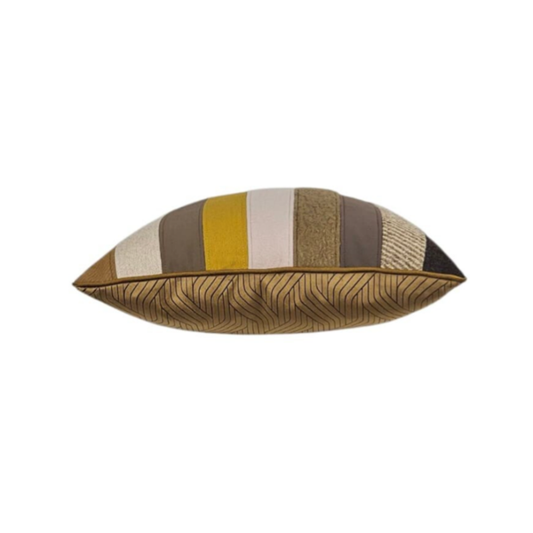 Terre Dorée, dit sierkussen is samengesteld uit exclusieve stoffen en biedt een verfijnde uitstraling. De achterkant is gemaakt van hoogwaardige stof uit Italië, wat zorgt voor een luxe touch. Met een uniek design aan beide zijden is het kussen niet alleen veelzijdig, maar ook een stijlvolle aanvulling voor elk interieur.