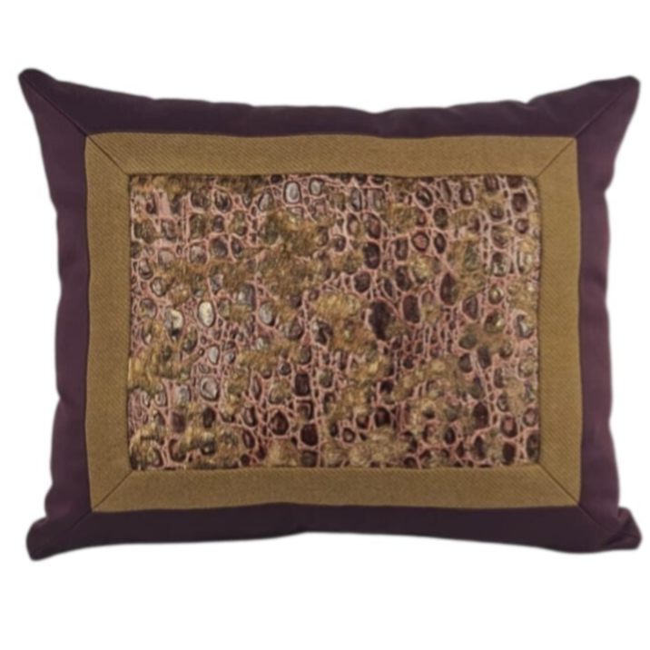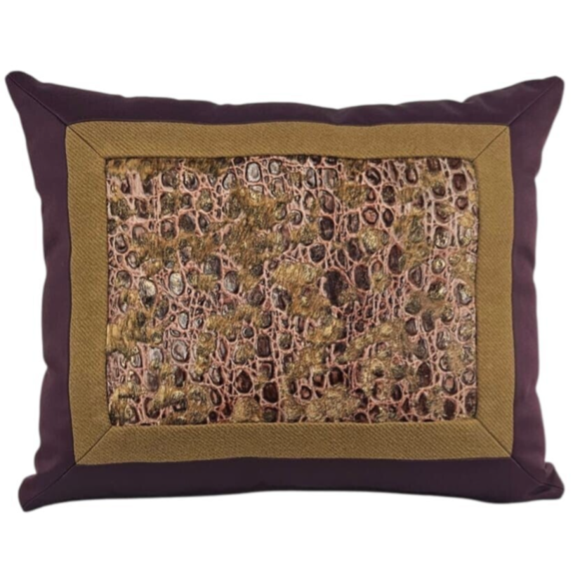 Het kussen "Vache Violette" is een statementstuk met een verfijnde uitstraling. Het grote kussen is vervaardigd uit koeienleer, die bewerkt is voor extra textuur en diepte. Het kussen is verder verrijkt met een luxueuze tweed, wat de uitstraling van het kussen een verfijnde, toch gezellige uitstraling geeft. De kleuren van het kussen zijn een prachtige combinatie van violette en bruin, wat een warme, uitnodigende sfeer creëert. De sprankeling van de koeienleer komt mooi tot zijn recht in dit zorgvuldig samengestelde ontwerp, waardoor het kussen zowel krachtig als stijlvol is.