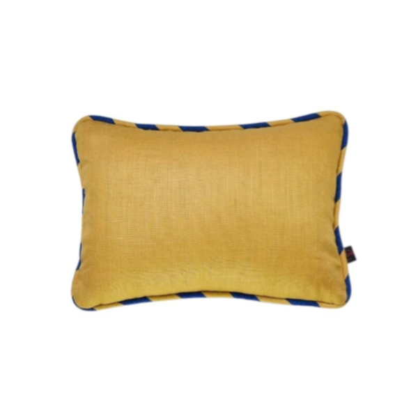 Dit kussen is afgewerkt met een speelse piping, waardoor het op een unieke en luxe manier tot zijn recht komt.